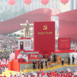 2019年10月1日上午,庆祝中华人民共和国成立70周年大会在北京天安门广场隆重举行。这是群众游行中的“从严治党”方阵。新华社记者 兰红光 摄