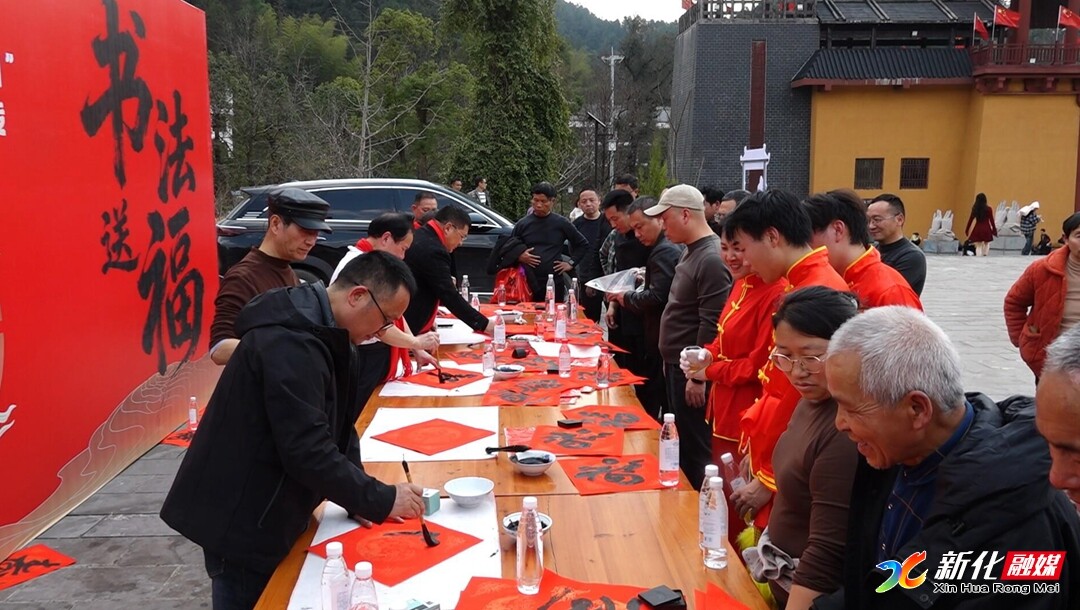 在当天的非遗庙会和特色市集上,10支“斗龙”展演队伍同台竞技,将梅山民俗的魅力展现得淋漓尽致;书法名家挥毫泼墨,一幅幅饱含新春祝福的“福”字与马年吉祥语新鲜出炉,免费赠予游客;梅山山歌、传统武术等非遗节目轮番上演,让游客近距离感受千年非遗的独特魅力。