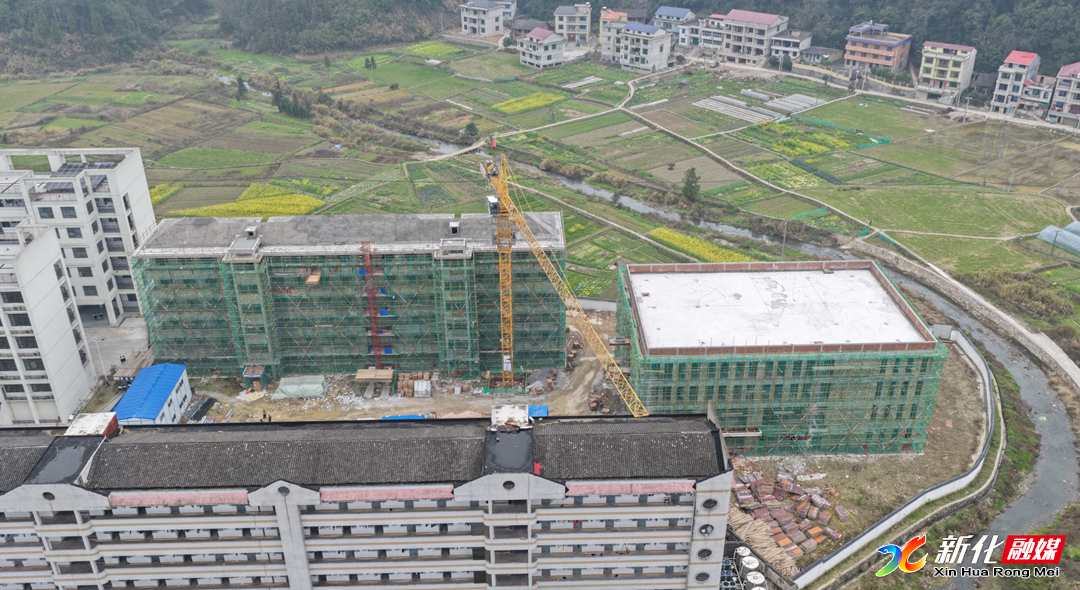 3月6日,记者在新化四中新建学生宿舍与食堂项目施工现场看到,两栋6层宿舍楼及一栋4层食堂主体结构均已封顶,进入内外装施工与管线预埋阶段。现场只见塔吊运转、机械轰鸣,五十余名工人各司其职,现场秩序井然、安全规范。