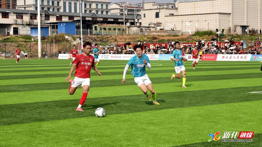 上半场第41分钟,场上僵局被打破。新化农商银行队在前场打出精妙配合,谭想接边路传中,禁区内冷静施射,球应声入网,整个球场瞬间被点燃,看台上响彻“新化加油”呐喊助威声。