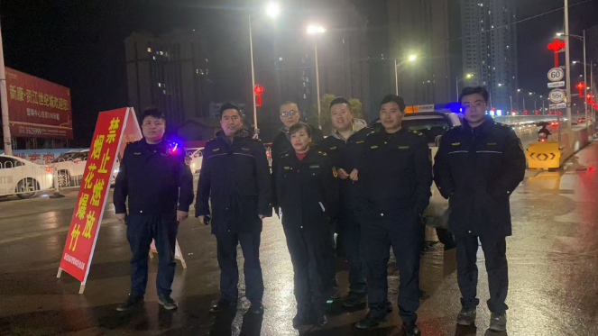△县城管大队在北塔大桥开展烟花爆竹禁限放值守。