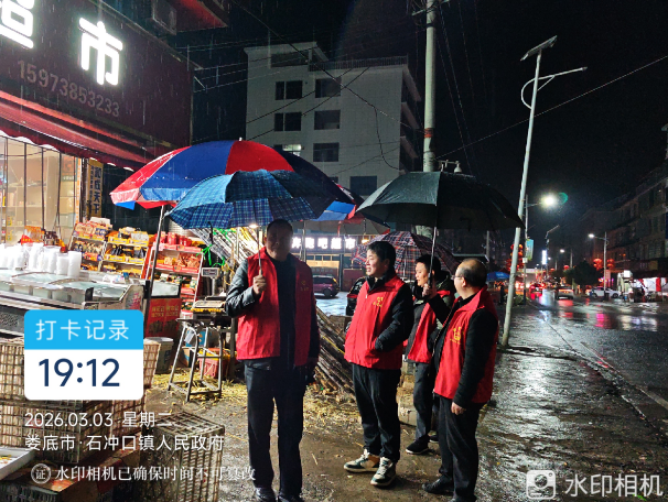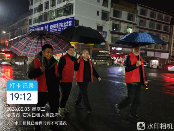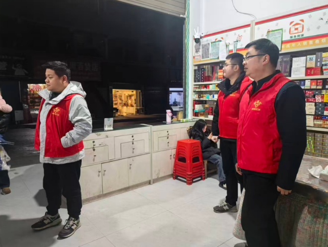 △石冲口镇值班干部开展禁燃禁炮和“九小场所”消防安全巡查。