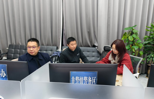 △在新化县综治中心指挥中心,工作人员正在调度元宵节烟花爆竹禁限放管控工作。